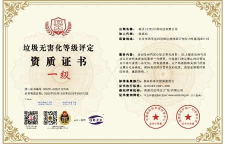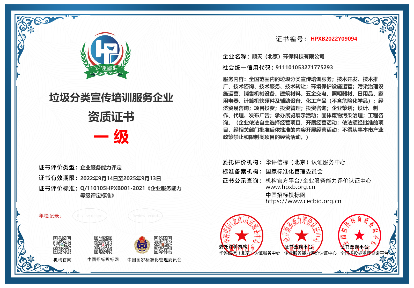 垃圾分類宣傳培訓(xùn)服務(wù)企業(yè)一級資質(zhì)證書